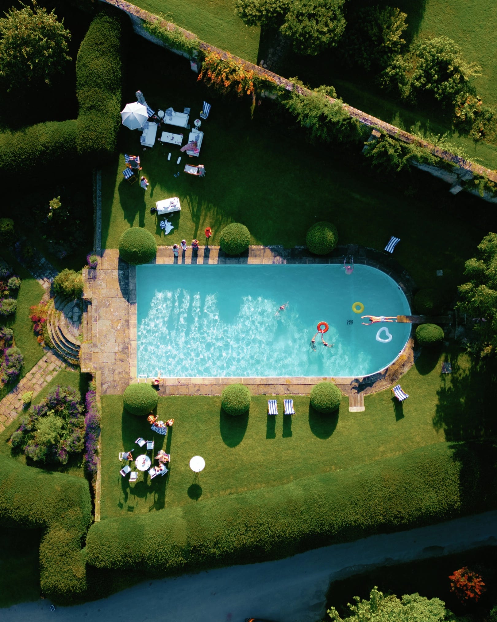At this time, the architect Sir Clough Williams-Ellis was also making important updates and renovations to the house and gardens and added the Ballroom, the pool and the iconic pond that reflects the image of the manor itself.